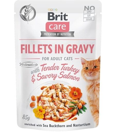 Brit Care Filetti di tacchino e salmone in salsa per gatti 85 g