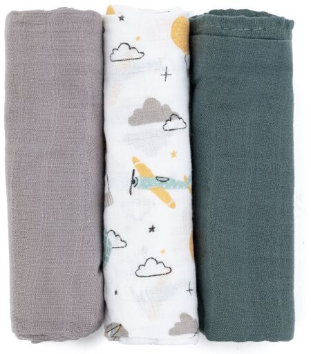 Petite&Mars Moussy pannolini in tessuto Grey Planes 68 x 68 cm 3 pz