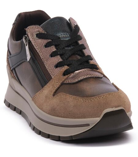 scarpe da donna realizzate in pelle bronzo con elementi in pelle scamosciati. chiusura con lacci e zip laterale. fodera in pelle sottopiede estraibile in pelle fondo in gomma alto 4cm. made in italy. colore: rame. ...