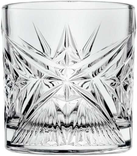 Tumbler in vetro cristallino con rilievi moderni. Lavabile in lavastoviglie. ...