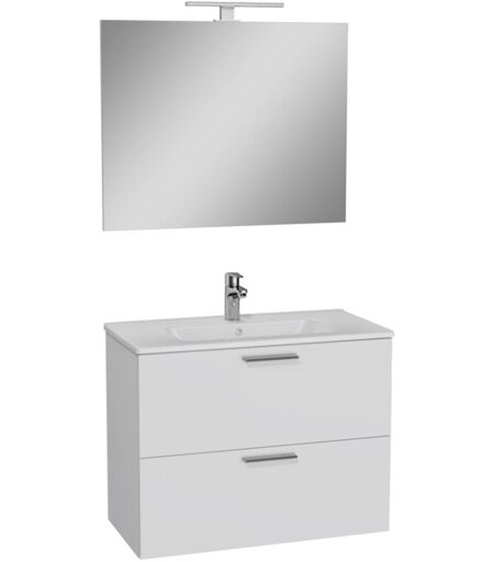 Mobile bagno con lavabo e specchio LED sospeso Stella 80x66x42 cm bianco