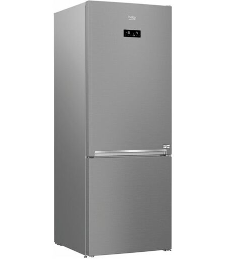 Frigorifero libera istallazione 508LT classe E 70 cm - Beko RCNE560E40ZLXPHUN Il frigorifero Beko RCNE560E40ZLXPHUN da 508 litri è la scelta ideale per chi cerca spazio, efficienza e tecnologia in un unico elettrodomestico. A libera installazione, con una larghezza di 70 cm, questo frigorifero combinato offre un’ampia capacità interna, perfetta per famiglie numerose o per chi ama fare la spesa in grande. Dotato di tecnologia No Frost, elimina la formazione di ghiaccio sia nel frigorifero che nel congelatore, mantenendo i cibi freschi più a lungo. La classe energetica E garantisce un buon bilanciamento tra prestazioni e consumi. La finitura inox elegante e moderna si adatta facilmente a qualsiasi cucina. Praticità e design firmati Beko. Caratteristiche: Frigorifero a due scomparti. Posizionamento: libera istallazione Congelatore: Parte inferiore Dimensioni (AxPxDz): 192 x 70 x 75 cm CONSUMO ENERGETICO Classe di efficienza energetica: E Consumo energetico: 303 kWh/anno VOLUME Volume totale: 508 litri Capacità frigorifero: 350 litri Capacità congelatore: 158 litri SISTEMA DI SBRINAMENTO No Frost (senza gelo):Pieno No Frost Sbrinamento del frigorifero: Automatico Sbrinamento congelatore: Automatico. GESTIONE Tipo di controllo: Controllo touch Schermo: display LCD CARATTERISTICHE Raffreddamento rapido: Si Congelamento rapido: Si Modalità vacanza: Si CARATTERISTICHE UNICHE Allarme cambio temperatura: Si Wifi: No Zona zero: Si Zona di freschezza: Si Ripiano per bottiglie: No Generatore di ghiaccio: No Dispenser: No. PARAMETRI COMUNI Tipo di scaffale: Vetro temperato Termostato: Elettronico Vani congelatore: 3 Capacità di congelamento: 6,5 kg / 24 ore Livello di rumore: 38dB Porte a doppia anta: Si Colore: Porte in acciaio inox, corpo grigio. ...
