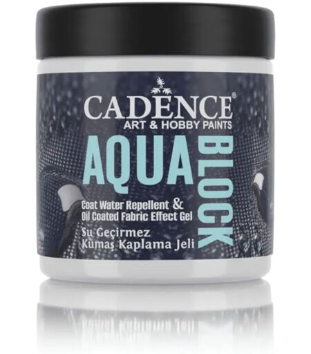 Gel a base d'acqua per la creazione di tessuti impermeabili. Consistenza cremosa ad asciugatura rapida. Inodore. Non altera il colore del tessuto. Può essere applicato con un pennello o con una spatola larga . Tempo di asciugatura: da 3 a 6 ore. Dopo 24 ore dall'applicazione, stirare sul rovescio, senza usare vapore. Applicazioni: runner da tavolo, ombrelli, borse, grembiuli, tovagliette all'americana, borse, tra gli altri. Lavabile in lavatrice (a 30°C), resistente all'abrasione. Atossico, certificati EN 71 e CE. Aqua Block Cadence Gel rivoluziona il modo in cui i tessuti vengono protetti. Questo prodotto a base d'acqua ha una formula unica che conferisce ai tessuti proprietà impermeabili dopo l'applicazione e l'asciugatura. Non ne altera l'aspetto o il colore. La sua consistenza cremosa garantisce un'applicazione facile e uniforme e l'assenza di profumo lo rende piacevole da usare. La trasparenza del gel Aqua Block Cadence è un altro vantaggio, il che significa che non devi ...