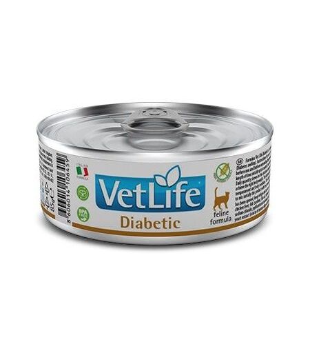 Farmina Vet Life Diabetic è un alimento dietetico completo, per gatti, per il controllo dell'apporto di glucosio (diabete mellito). Risparmia acquistando il Multipack da 12 lattine. ...