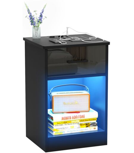 HALOYO Set di 1 comodini con 1 cassetto, comodino, tavolino per telefono, prese ca, decorazione in legno, per soggiorno, camera da letto, ufficio, 40x35x60