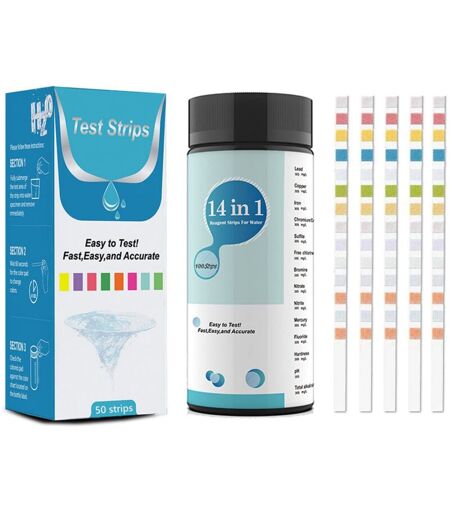 RAPANDA Kit per test dell'acqua potabile 14 in 1 - Kit per test dell'acqua potabile, piscina e spa per durezza, pH, piombo, ferro, rame, cloro, fluoro e