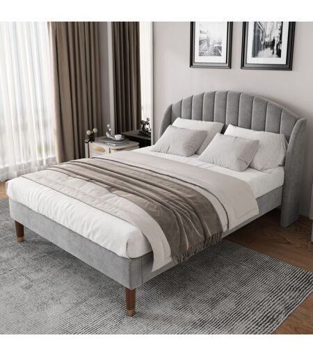 OKWISH Letto imbottito 140200 con rete a doghe e testiera, letto per ragazzi, per adulti e ragazzi, supporto a doghe in legno, montaggio facile, velluto,