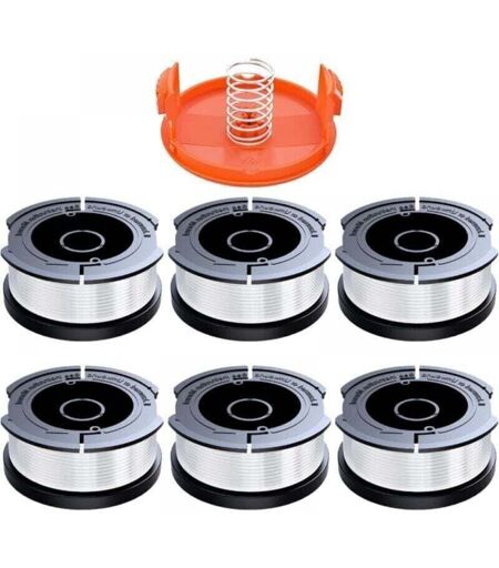 ODIPIE 6 pezzi Bobina di filo per decespugliatore compatibile con Black and Decker, Ø1,65 mm con filo per decespugliatore da 9 m, contiene 1 copertura di