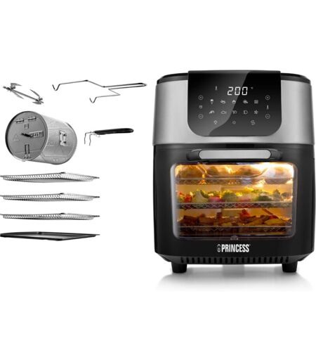 Princess Friggitrice ad Aria Forno Deluxe – 11 l – 1800 w – Schermo tattile digitale – 10 programmi preimpostati – Girapollo e cestello inclusi – Acciaio