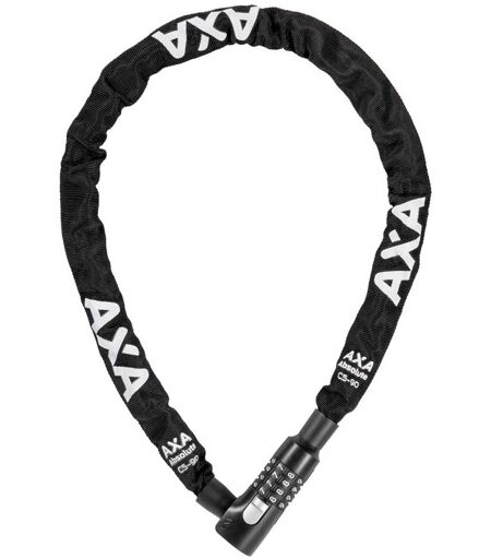 Lucchetto a catena con combinazione AXA ´´Absolute´´ confezione self-service, Ø 5mm, lunghezza 90cm, combinazione a 4 punti liberamente regolabile, maglie in acciaio temprato, dettagli di design in acciaio inossidabile, rivestimento in poliestere, testa del lucchetto con funzione di aggancio automatico a scatto, indice di sicurezza AXA:7 (su 15).LUCCHETTO A CATENA CON COMBINAZIONE AXA.ABSOLUTE CODE 5/90. ...