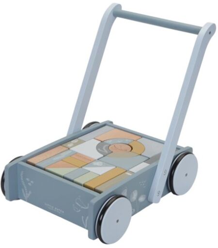 Questo delizioso carrellino e compreso di ruote e blocchi in legno colorati, abbinati a disegni di fiori e insetti in pieno stile "wild flowers". Le diverse forme dei blocchi permettono al bambino di riconoscerne i diversi colori e misure. La maniglia e posizionata ad un altezza tale che il bambino la possa trascinare con la manina. Dimensione: 39x30x40,5 cm. 12 mesi. ...