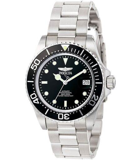INFORMAZIONI GENERALI.Collezione:Invicta Automatic.Modello:Pro Diver.TARGET:Maschile.Casual.Adulto.MOVIMENTO E CARATTERISTICHE:SEIKO.NH35A.Meccanico.Analogico.Data.Automatico.CASSA:Acciaio inossidabile.Grigio argento.Spessore 14mm.Diametro 40mm.CINTURINO/BRACCIALE:Acciaio inossidabile.Grigio argento.Larghezza 20mm.Lunghezza 21cm.QUADRANTE:Nero.Metallo. ...