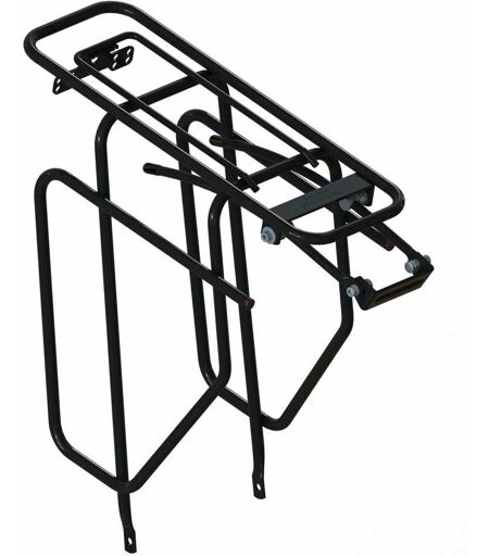 Portapacchi posteriore STECO Tubic Slim 28, tubi in acciaio da 10 mm, attacco con piastra Pletscher / occhielli al telaio. Portapacchi da turismo elegante e sottile, con ferma borse laterali, carico: 25 kg, ISO 11243:2016. ...