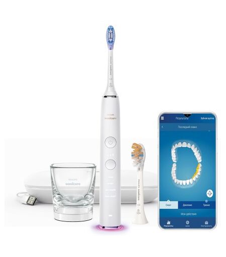 Philips DiamondClean Smart 9400 Sonicare Spazzolino Elettrico Sonico Bianco con App, con custodia da viaggio HX9917/88 ...