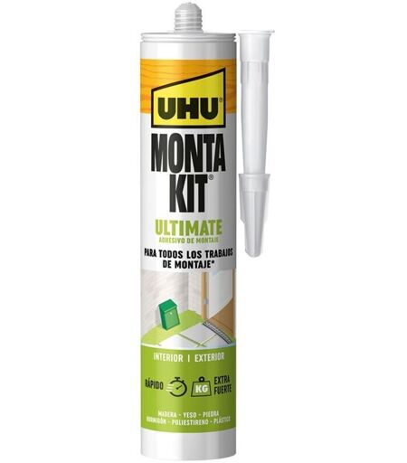 Adesivo per montaggio UHU Montakit Ultimate - Cartuccia professionale 440 g 7000109 Adesivo per montaggio polimerico estremamente resistente Universale e privo di solventi li> Per unire tutti i tipi di materiali su superfici porose e non porose Resistente al carico dopo ore Senza l'utilizzo di chiodi o viti Per uso interno ed esterno Dimensioni: 50x50x230mm L'adesivo di montaggio UHU Montakit Ultimate è una cartuccia professionale da 440 g che offre un legame estremamente forte e duraturo. Questo adesivo di montaggio polimerico è universale e privo di solventi, il che lo rende ideale per incollare tutti i tipi di materiali su superfici porose e non porose. Inoltre resiste al carico dopo ore di applicazione, senza bisogno di chiodi o viti. Può essere utilizzato sia in interni che in esterni, offrendo una grande versatilità nella sua applicazione. Adesivo di montaggio polimerico estremamente resistente Universale e privo di solventi Per unire tutti i tipi di materiali su superfici ...