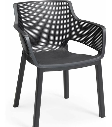 La poltrona Elisa incarna l'equilibrio perfetto tra comfort e modernità. Con uno schienale e una seduta arrotondati che abbracciano delicatamente il corpo, e braccioli dalla linea accogliente, questa poltrona offre un comfort senza pari. La sua trama a rete, dallo stile contemporaneo, aggiunge un tocco di leggerezza e freschezza al design complessivo. Facile da pulire e praticamente impilabile, Elisa è una scelta ideale per qualsiasi ambiente, sia interno che esterno. Le sue dimensioni di 57,7 x 62,5 x 79 cm la rendono adatta a una varietà di spazi, dalla sala da pranzo al patio. Con la sua combinazione di funzionalità e estetica, la poltrona Elisa è un'aggiunta versatile e accattivante a qualsiasi arredamento. ...