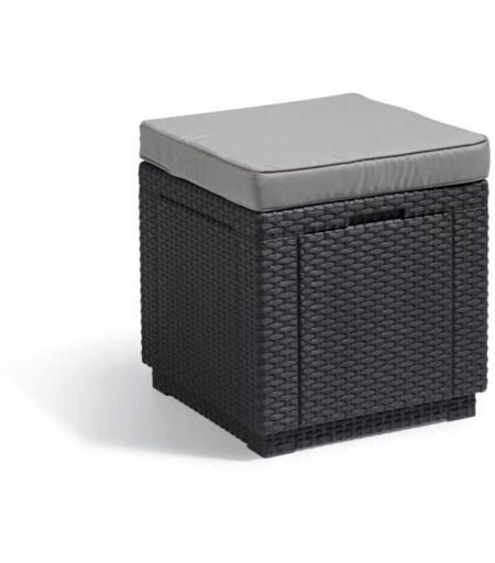 ALLIBERT Jardin Tavolino-pouf con cuscino e vano di stoccaggio integrato - Imitazione rattan intrecciato grafite -