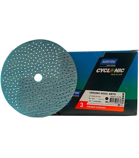 • NORTON DISCHI CYCLONIC MULTI-AIR • CODICE: 66261151796 • DISCHI ABRASIVI PER CARTEGGIATURA CON LEVIGATRICI • PASSAGGIO: 3 • COLORE: SALMONE • DIAMETRO: 150 MM • PEZZI 50 • SUPPORTO MICRO SOFT TOUCH • APPLICAZIONE: CARTEGGIATURA FONDO Norton Dischi Abrasivi Foratura Cyclonic Multi-Air sono identificabili da differenti colori per ciascuna applicazione. Disponibili con o senza supporto Micro Soft-Touch. Accessori disponibili ROTOLI PRE-TAGLIATI 72 x12m - FORATURA CYCLONIC Rotoli pre-tagliati in un'unica dimensione applicabili a tutti i tamponi: 70 x 125mm, 70 x 198mm e 70 x 400mm. DISPENSER Consente di tenere ordinata l'intera gamma e di utilizzare dischi e rotoli selezionandoli in modo semplice e veloce. Le singole unità possono essere assemblate, in modo da avere tutta la gamma a portata di mano. Garantiscono una carteggiatura più veloce e grazie all'unicità della sua foratura, Norton Cyclonic aumenta la produttività fino al 32% in più rispetto ai dischi multi-forati tradizionali. ...