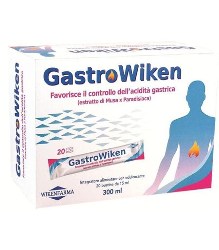 GastroWiken - Descrizione Integratore alimentare in gel a base di liquirizia, estratto glicerico di banana, lentisco e sodio ialuronato. La liquirizia ed il lentisco favoriscono la funzionalità del sistema digerente. L’estratto glicerico di banana favorisce il controllo dell’acidità gastrica, suppo… ...