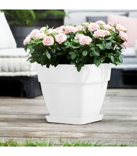 Elho Vaso per piante 'vibia campana' Bianco Rotondo Plastica Riciclata Sottovaso Rotondo/Ovale Balcone Davanzale Finestra Varie Misure eckig/15 Liter (de)