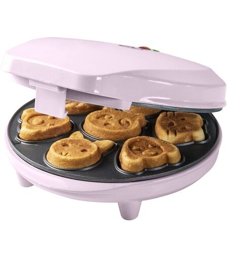 Bestron Waffle Maker con motivi di animali, piastra per Waffle mini biscotti a cialda, indicatoro luminso & rivestimento antiaderente, 700 watt, colore: rosa