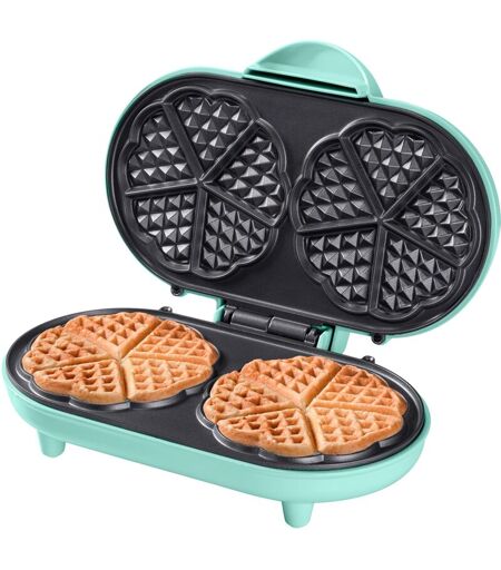 Bestron Waffle Maker, piastra per waffle doppio a forma di cuore, macchina per waffle con antiaderente & indicatoro luminso, collezione Sweet Dreams, 700 watt, colore: Verde ...