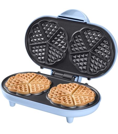 Bestron Waffle Maker, piastra per waffle doppio a forma di cuore, macchina per waffle con antiaderente & indicatoro luminso, collezione Sweet Dreams, 700 watt, colore: Blu ...