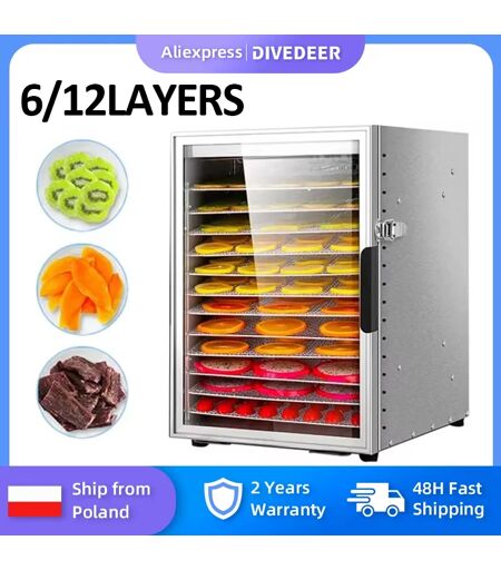 DIVEDEER 6/12 Strati Essiccatore elettrico per frutta per verdure Disidratatore alimentare Essiccazione per essiccatore di frutta e verdura