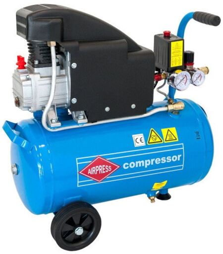 DATI TECNICI: Capacità serbatoio dispositivo 24 l Tipo motore olio Applicazioni per ottenere aria compressa per utensili pneumatici Pressione massima 8 bar Numero di cilindri 1 Portata 150 l/min (in aspirazione) Potenza massima 1,5 HP / 1,1 kW Dimensioni del prodotto58 x 25,5 x 58 cm Lunghezza imballo25 cm Altezza imballo58 cm Larghezza imballo59 cm Peso lordo25 kg CARATTERISTICHE: I compressori a pistone Airpress con una pressione massima di 8 bar sono dispositivi compatti e facili da usare. Il basso consumo energetico e le dimensioni ridotte li rendono ideali per l'uso in un'azienda agricola domestica o in un garage. Per la completa soddisfazione dell'utente, sono inoltre dotati di manometri, un connettore rapido pneumatico e uno scarico della condensa. ...