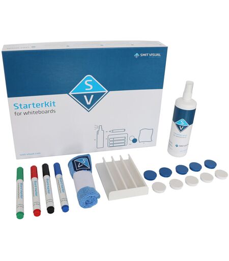 Starter set accessori universale per lavagna (Smit Visual) Un kit di partenza completo per poter utilizzare immediatamente la tua lavagna . Il kit di base per lavagna è composto da: 4 pennarelli per lavagna 1 porta pennarelli magnetico Assortimento di 10 magneti per lavagna bianca 1x cancellino per lavagna magnetica 1x detergente per lavagna spray ...