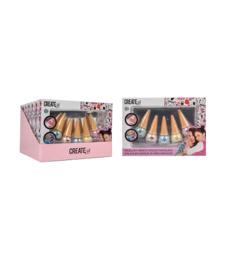Il set di smalti per unghie di Create It! Contiene i colori piu' carini in un fantastico cono gelato! I cinque colori diversi contengono anche coriandoli per far brillare ancora di piu' le tue unghie. Scegli il tuo colore preferito e brilla a ogni festa! Questo set e' disponibile in una scatola trasparente. ...