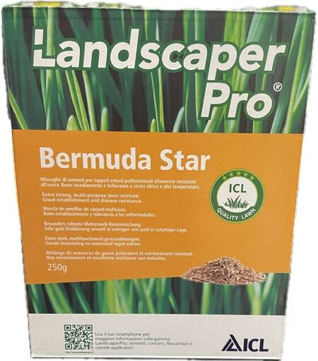 Miscuglio di sementi professionale per tappeto erboso, polifunzionali e altamente resistenti all'usura. Buon insediamento e tolleranza a stress idrico e alte temperature. 15 gr/mq colore: verde intenso esposizione: pieno sole Composizione: cynodom dactylon altezza di taglio: da 20 mm ...