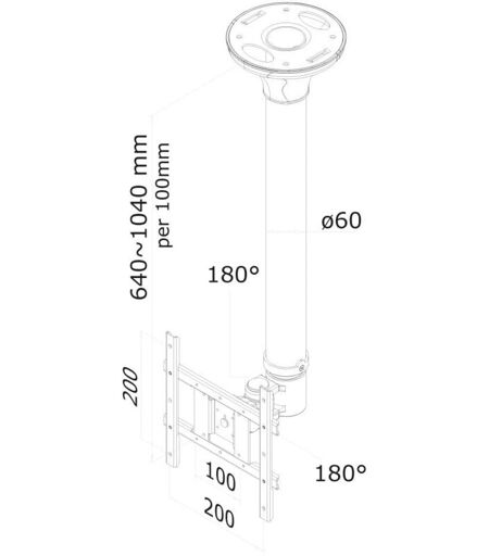 Il FPMA-C200BLACK è un supporto a soffitto de con 1 punto de rotazione per schermi LCD/LED/TFT de fino a 40" (102 cm). Questo supporto da soffitto per LCD/LED/TFT Neomounts, modello FPMA-C200BLACK, consente di montare uno schermo di fino a 40" sul il soffitto. Questo modello consente agli utenti di ruotare, sollevare, inclinare (90 gradi) e ruotare lo schermo LCD per la massima efficienza e comodità. Elde la regolazione dell'altezza va da 64 a 104 cm. El il montaggio sul el soffitto può essere facilmente attaccato al de retro di uno schermo con la universalede schema di fori VESA 75x75, 100x100, 200x100 e 200x200 mm. Capacità massima di peso de: 20 kg Nero Dimensione massima dello schermo: 101,6 cm (40") Tipo di montaggio: a soffitto Compatibilità interfaccia de montaggio (min): 75 x 75 mm Compatibilità interfaccia de montaggio (max): 200 x 200 mm Regolazioni dell'altezza Gestione dei cavi de Montaggio Dimensioni minime dello schermo de25,4 cm (10")Capacità massima di peso*20 kg (66 ...