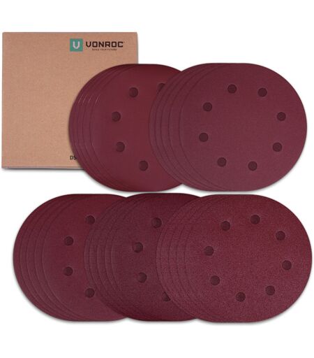 VONROC Set di carta abrasiva, 25 pezzi, universale, per levigatrici da parete/soffitto, 180 mm, con chiusura in velcro -