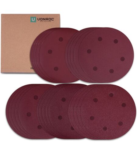VONROC Set di 25 pezzi di carta abrasiva universale per levigatrice da muro per pareti e soffitti, diametro Ø225mm -