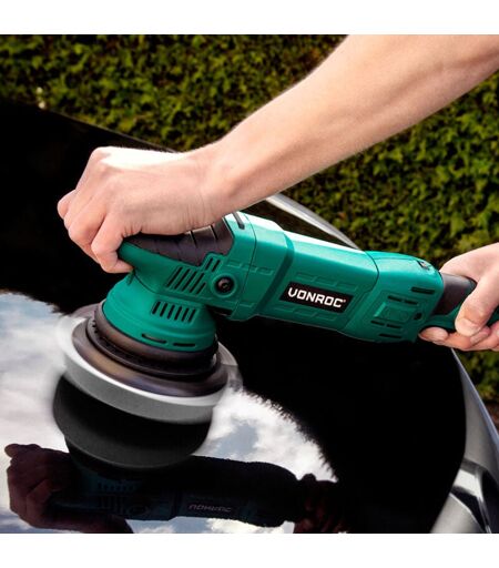VONROC Lucidatrice eccentrica a doppia azione 1050W-150mm. Include 4 dischi per lucidatura, disco di supporto e sacca portautensili -