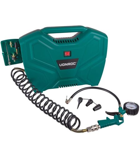 VONROC - Compressore portatile 1100W - 8 bar - Senza olio - 180 l/m. Include 11 accessori