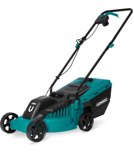 VONROC - TagliaerbaTosaerba elettrico 1300W. Altezza taglio regolabile: 30, 50, 70mm. Larghezza taglio: 32cm. Contenitore raccolta da 30 litri con