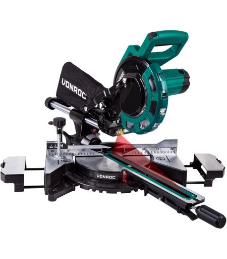 VONROC Troncatrice radiale 2000W, Ø 216mm, laser e LED integrati. Include lama con 40 denti e 2 estensioni da tavolo