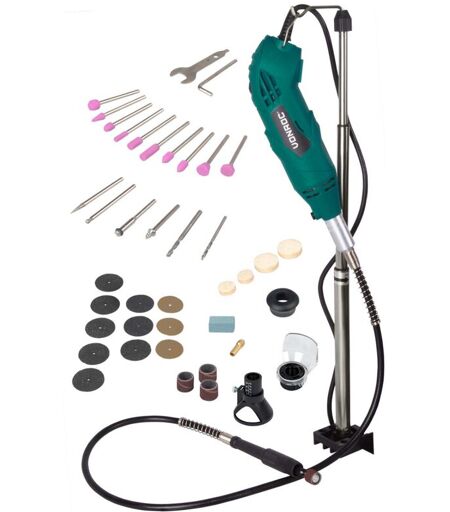 VONROC Strumento rotante multifunzione elettrico 160W. Include 40 accessori, albero flessibile, protezione, accessorio per fresatura e sacca