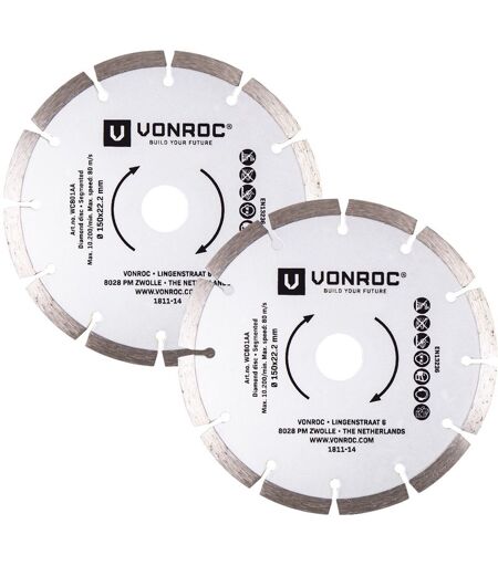 VONROC - Set di 2 lame diamantate 150mm universali per scanalatore e smerigliatrice angolare. Per tagliare cemento, mattoni, pietre, piastrelle,