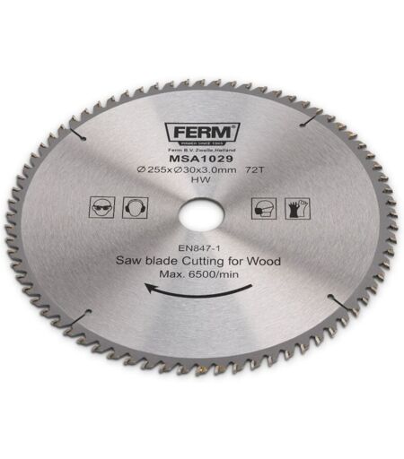 Ferm Lama circolare hss 255 x 30 mm - 72 denti. Per seghe da tavolo e troncatrici -