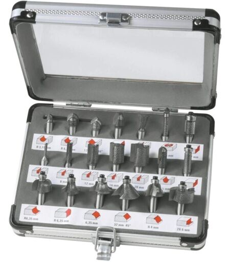 Ferm Set di 20 frese adatti a vari marchi di fresatrici con alberi con diametro 8 mm -