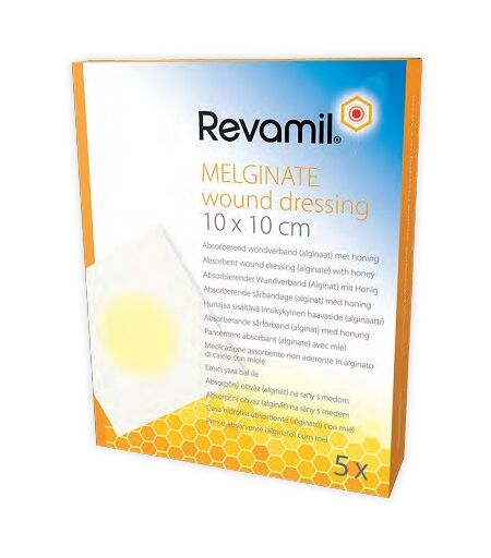 Revamil MELGINATE wound dressing 10 x 10 cm Medicazione assorbente non aderente in alginato di calcio con miele Descrizione prodotto Revamil Melginate è una medicazione indicata per ferite essudanti. È composta da fibre naturali di alginato di calcio (100%) in combinazione con Revamil miele ricco d… ...