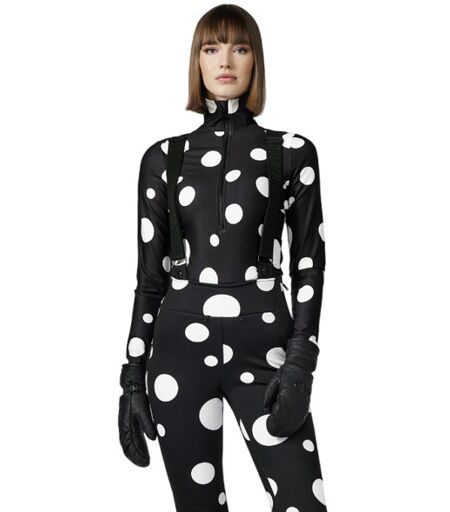 Goldbergh Dottie W felpa in pile da donna, calda e protettiva, con collo alto, ideale per vivere le giornate sulle piste con uno stile esclusivo. Realizzata in tessuto tecnico Powerstretch con interno spazzolato, elastico, ad asciugatura rapida e dall'ottima gestione dell'umidità. tessuto Powerstretch in poliestere riciclato, altamente elastico, ad asciugatura rapida e dall'ottima gestione dell'umidità finitura antiodore collo alto apertura frontale a mezza lunghezza stampa all-over con pois logo in metallo sulla manica ...