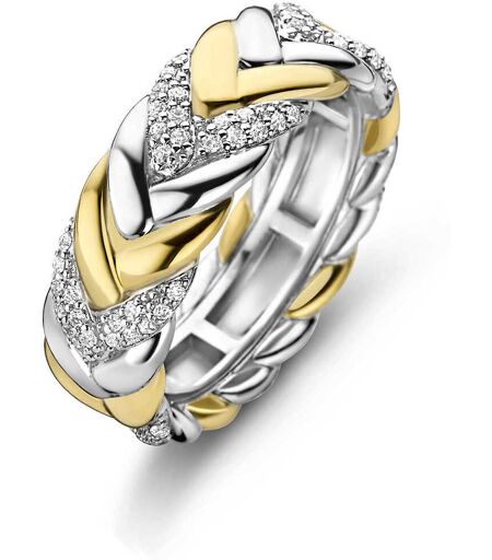 Anello Da Donna Di Ti Sento - Milano. Anello Realizzato In Argento Sterling Color Oro Con Placcatura D'Oro Giallo E Zirconi. Misura: 15,9 Mm. Larghezza Fascia Superiore: 7 Mm. La Referenza È: 12264zy/50, Materiale Gioiello: Acciaio, Argento 925, ...