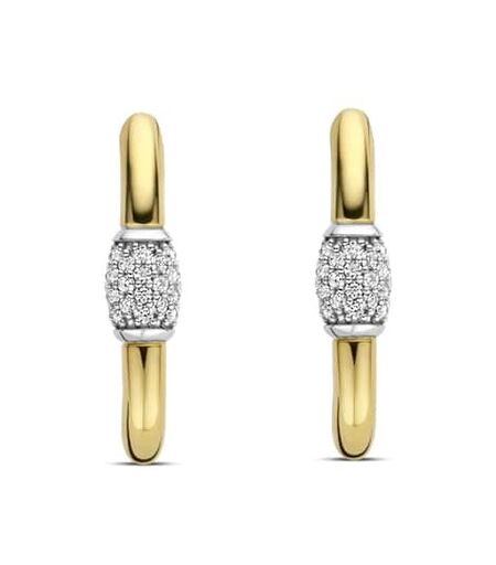 Orecchini In Argento 925% Rettangolari Placcati Oro, Dettaglio Pave Incastonato A Mano Con Pietre Di Zirconia Cubica Bianca. ...