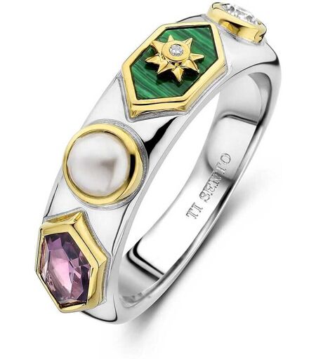 Anello Da Donna Di Ti Sento Milano. Gioiello Realizzato In Argento Sterling Color Oro E Cristallo Sintetico. Questo Anello È Di Colore Viola. La Referenza È: 12314pu/54., Materiale Gioiello: Acciaio, Argento 925, Bigiotteria, Oro, Pelle; Misura Anello : ...