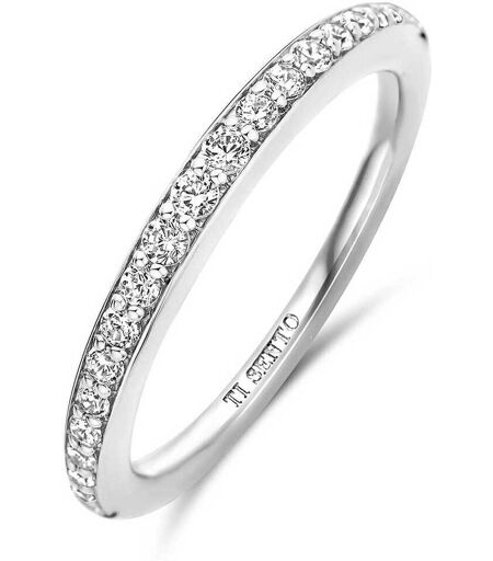Anello Del Brand Ti Sento Milano. Anello In Argento Placcato Platino Con Zircone Bianco. Gioiello Con Zircone. La Misura È 56. La Larghezza È 2,5 Mm Lo Spessore Della Pietra È 1,5 Mm. La Referenza È 12317zi/56, Materiale Gioiello: Acciaio, Argento 925, ...
