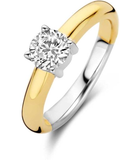 Anello Del Brand Ti Sento Milano. Anello In Argento Sterling Color Oro Con Zircone Bianco E Placcatura D'Oro Giallo. Gioiello Con Zircone. La Misura È 52. Il Peso È 0,00422. La Referenza È 1463zy/52, Materiale Gioiello: Acciaio, Argento 925, ...